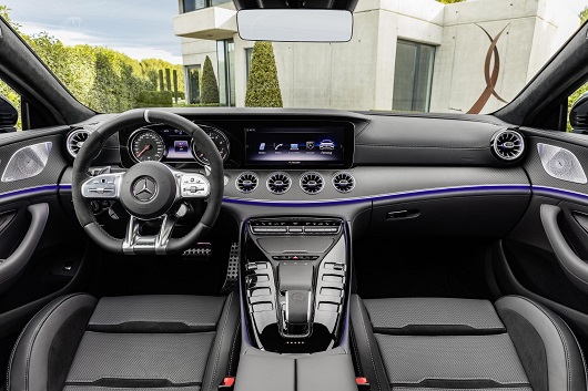 Nội thất của Mercedes-Benz chưa bao giờ khiến người dùng thất vọng. Ngoài các thiết kế mang đậm AMG trên, người dùng còn cảm nhận được sự đẳng cấp của GT 53 4MATIC+ 4-Door Coupé bởi những chi tiết như cửa sổ trời chỉnh điện, hệ thống đèn viền nội thất 64 màu, bảng đồng hồ dạng kỹ thuật số với màn hình 12.3-inch, mặt trên bảng tap-lô bọc da ARTICO…